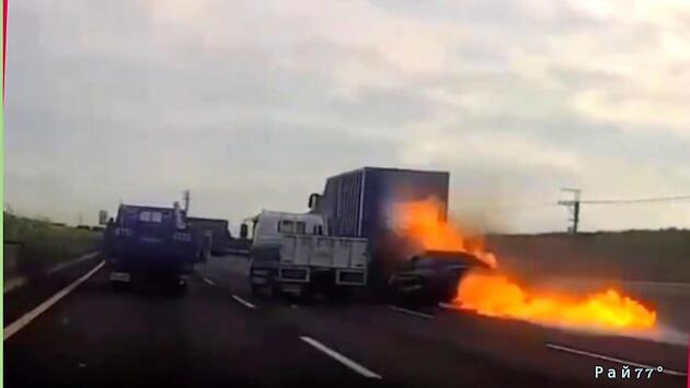 Шокирующее ДТП с загоревшимся автомобилем попало на видео в Китае