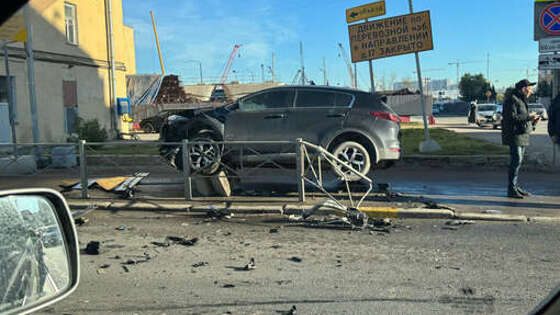 «Кроссовер вылетел на тротуар и снес столб после ДТП на проспекте Обуховской Обороны. Часть машины зависла в воздухе из-за наезда на бетонный блок. В аварию попали еще как минимум два автомобиля», — говорится в сообщении.