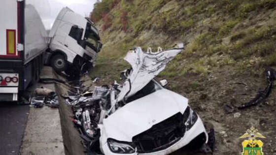 На Кубани легковой автомобиль врезался в большегруз, четыре человека погибли