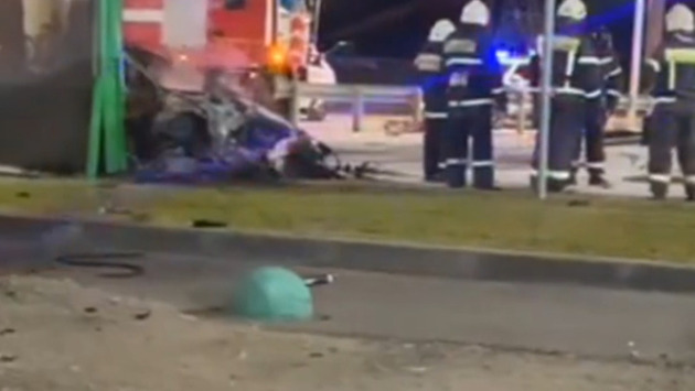 На большой скорости иномарка вылетела на встречную полосу и врезалась в заправочную колонку АЗС. В результате мощного удара автомобиль мгновенно воспламенился.