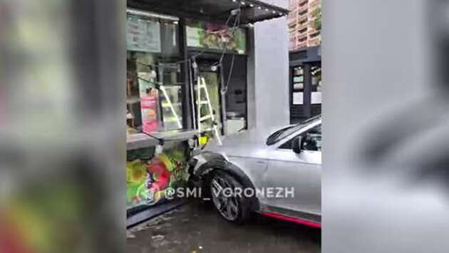 В Воронеже водитель Audi разгромил киоск с выпечкой и спрятал номера