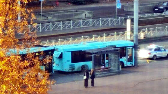 В Приморском районе Санкт-Петербурга столкнулись два рейсовых автобуса. Об этом сообщает Telegram-канал "Коммерсантъ Санкт-Петербург". По данным журналистов, трое пассажиров были госпитализированы. Авария произошла утром 19 октября у дома 128 по улице Савушкина. Полиция проводит проверку обстоятельств происшествия. По словам очевидцев, водитель маршрута N 101 не успел затормозить и врезался в стоявший на остановке автобус маршрута N 120. 17 октября в Карелии произошла авария с автобусом, перевозившим бывших заключенных. По информации журналистов, транспорт ехал из Петрозаводска в поселок Каменка Ленинградской области. В результате ДТП травмы получили 10 человек, прибывшие медики госпитализировали пострадавших. 15 октября в Челябинской области легковая машина протаранила поворачивающую фуру. В результате транспортное средство первого участника ДТП смяло.