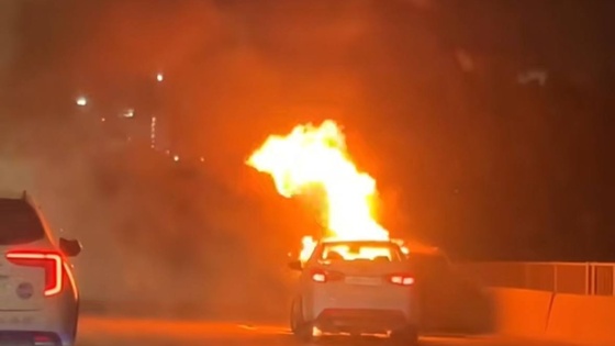 По предварительной информации, пожар мог случиться после сильного столкновения машины с металлическим дорожным отбойником. В сторону верхней части города сейчас собирается большая пробка.