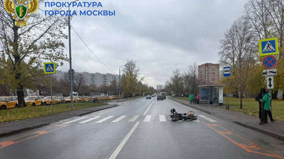 В Москве курьер на электромопеде сбил пожилую женщину. Об этом сообщает прокуратура Москвы в своем Telegram-канале. "По предварительным данным, на ул. Нижние Поля сотрудник службы доставки, не имея водительского удостоверения, управляя личным электромопедом мощностью более 250w, сбил женщину 1946 г.р., переходившую проезжую часть по нерегулируемому пешеходному переходу", - говорится в публикации. На опубликованных в сети кадрах, что электромопед, на котором водитель сбил женщин, лежит на пешеходном переходе. По информации канала, прибывшие медики госпитализировали пострадавшую женщину. В настоящее время прокуратура Юго-Восточного административного округа Москвы контролирует установление всех обстоятельств и причин произошедшего ДТП. До этого в Москве на МКАД столкнулись два грузовика. Очевидцы запечатлели последствия инцидента. На кадрах видно, что грузовой транспорт получил серьезные повреждения: у машины смят кузов, выбиты стекла, разбит капот, бампер.