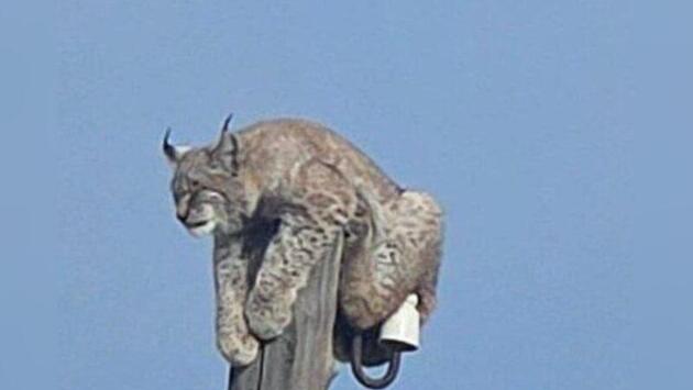 В поселке Могойтуй спасали рысь, забравшуюся на столб