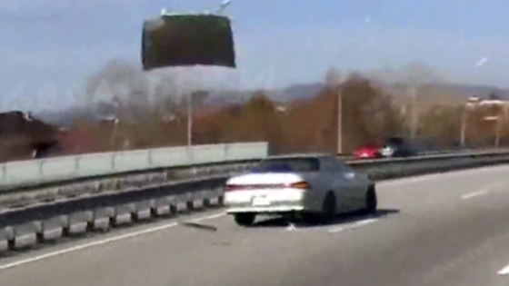 Видеорегистратор автомобиля, водитель которого стал очевидцем произошедшего, запечатлел инцидент. На кадрах видно, как капот серой машины отрывается, подлетает в воздух и несколько раз переворачивается.
