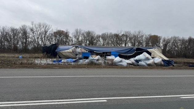 В 11.10 водитель грузовика «Скания» на 771 км трассы Р-22 «Каспий» не справился с управлением и съехал с дороги. После этого фура опрокинулась.