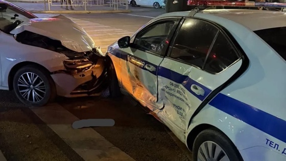 На Кубани полицейский автомобиль попал в ДТП на перекрестке