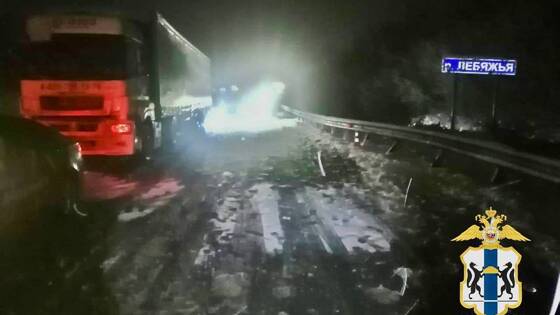 Водитель грузовика не пострадал. На месте аварии работают сотрудники ГИБДД и следственно-оперативная группа. На трассе организовано реверсивное движение.