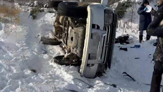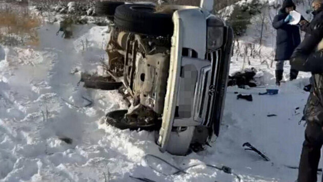 В ведомстве отметили, что автомобиль Toyota Land Cruiser Prado опрокинулся в кювет утром на трассе Южно-Сахалинск Оха.