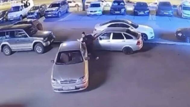 На записи, сделанной камерой видеонаблюдения, можно наблюдать, как мужчина, обративший внимание на то, что один из автомобилей на парковке покатился назад в сторону другого, подходит к нему и, упираясь в багажную дверь двумя руками, останавливает машину. Предотвратив аварию и убедившись, что машина не поедет дальше, россиянин ушел.