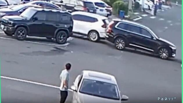 Драматичное ДТП было запечатлено камерой наружного наблюдения, установленной на парковке возле частного сектора в Поднебесной.