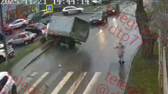 В Мытищах "Газель" опрокинулась, объезжая женщину на зебре, и попала на видео