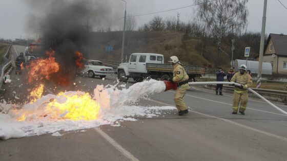 В Фатежском районе прошли масштабные учения спасательных служб. Более 60 человек и 40 единиц техники тренировались ликвидировать последствия серьёзной аварии. По легенде учений, на трассе столкнулись грузовой автомобиль, бензовоз, легковушка и микроавтобус. В результате столкновения разлилось топливо и начался пожар. Часть условно погибших и пострадавших оказалась заблокированной в авто. В обоих направлениях дороги образовался затор, а работу спасателей осложнила плохая погода. Первыми на место ЧП прибыли огнеборцы, спасатели и аэромобильная группировка МЧС. На квадроцикле они доставляли людям в заторе еду и питьё. Также для автомобилистов организовали мобильный пункт питания и обогрева. К работе подключились медики и полиция. Всего в тренировке принимали участие более 60 человек и 40 единиц техники. Тренировка показала, как работает оповещение и насколько быстро реагирует руководство муниципалитета. Чтобы «стабилизировать» ситуацию в Фатежском районе, спецслужбам потребовалось около часа, это соответствует нормам, сообщает пресс-служба МЧС России по Курской области. В комитете региональной безопасности отметили, что подобные тренировки помогают наладить взаимодействие всех служб и сократить время реагирования в реальной ситуации.