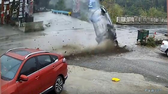 Легковой автомобиль взлетел и опрокинулся в КНР