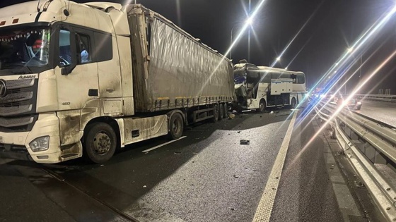 Ведомство также опубликовало фотографии места ЧП, на которых видно пострадавшие в результате аварии автобусы и большегруз.