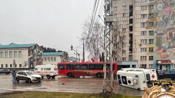 В Нефтекамске скорая перевернулась после столкновения с Lada Granta. В результате ДТП пострадал медик.
