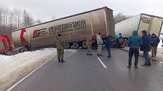 На 550-м километре трассы Р-255 "Сибирь" в Тяжинском муниципальном округе столкнулись не менее трёх автомобилей, включая два грузовика и легковой автомобиль.