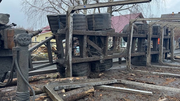 В Карелии погиб водитель легковушки, на которую лесовоз опрокинул бревна