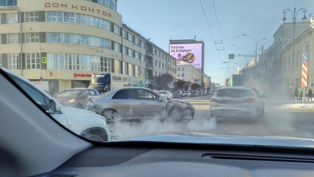Два автомобиля столкнулись днем 24 декабря в центре Екатеринбурга, спровоцировав большую пробку. Происшествие случилось на пересечении улиц Малышева и 8 Марта со стороны храма Большой Златоуст, сообщил "Уралинформбюро" очевидец.