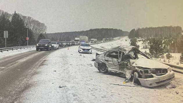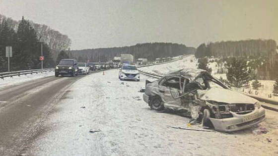 В Красноярском крае Hyundai разорвало при ударе о фуру на встречной полосе