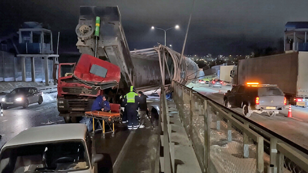 Грузовик протаранил пешеходный мост на трассе "Дон"