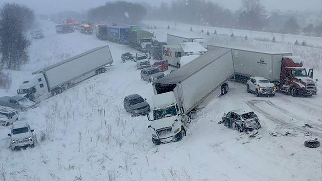 В США из-за обильного снегопада произошло столкновение 100 автомобилей