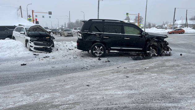 По предварительным данным, водитель Toyota Land Cruiser, двигаясь по улице Сибиряков-Гвардейцев, при повороте налево на Соборную не предоставил преимущество встречной Skoda Kodiaq, и столкнулся с ней.