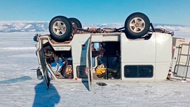 Известно, что внедорожник зацепил колесами разлом во льду и после этого перевернулся на крышу. Двое туристов обратились за медицинской помощью. По предварительным данным, они получили травмы позвоночника и головы, сообщили в федеральном государственном учреждении "Заповедное Прибайкалье".