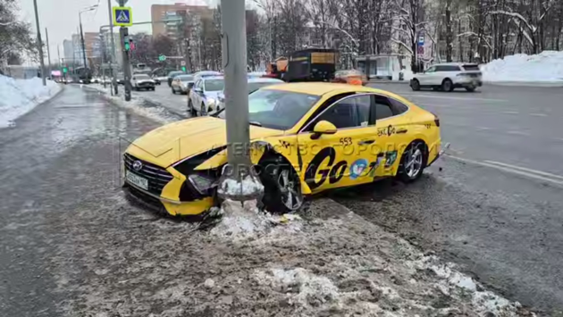 На юго-западе столицы в субботу, 7 февраля, водитель такси врезался в столб, после чего его госпитализировали с травмами.