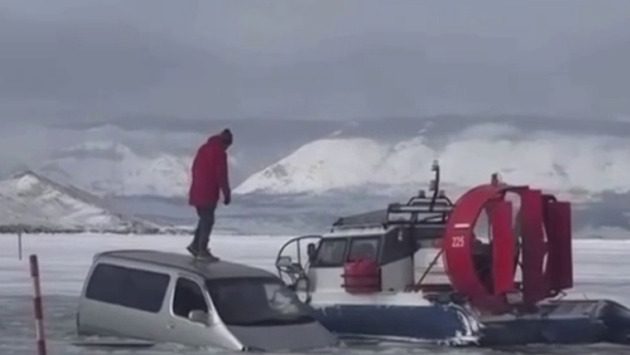 Два автомобиля ушли под лед на переправе озера Байкал.
