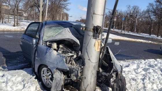 Под Волгоградом пожилой водитель иномарки врезался в опору освещения