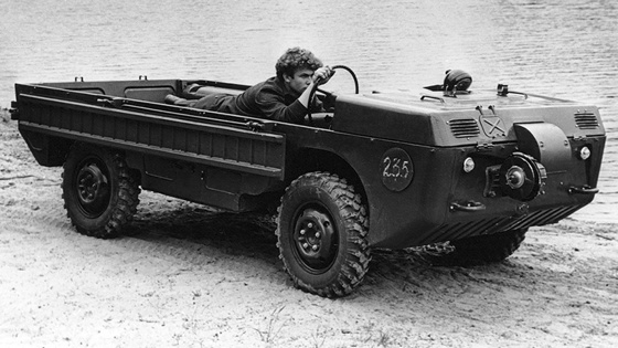 Боевой Запорожец Работу над транспортерами переднего края начали еще в середине прошлого столетия на московском НАМИ. Заказ поступил от Минобороны СССР и воздушно-десантных войск, которым потребовались машины с открытым кузовом небольшой высоты с двумя продольными местами для носилок, приспособленные для преодоления небольших водных преград, транспортировки самолетами или вертолетами и воздушного десантирования. Правда, в 1962 году из-за сильной загруженности предприятия и новых приказов "сверху", все наработки получили запорожские инженеры и конструкторы. Но, несмотря на это, работы предстояло много, поскольку проект находился вдалеке от финальной точки. Довести до ума плавающий транспортер доверили конструкторско-экспериментальному отделу "Коммунар". Заводчане не стали изобретать велосипед, поэтому их приоритетной задачей стала унификация военной машины с серийными автомобилями ЗАЗа. Но брать уже готовую платформу не стали (просто ни одна из имеющихся не подходила под армейское авто). На создание новой ушло немного времени. Под нее уже подогнали и силовой агрегат – верхнеклапанный V4 с воздушным охлаждением. Также запорожцы посчитали, что ТПК должен иметь блокировку дифференциала в заднем приводе. Первые опытные образцы плавающего транспортера ЗАЗ-967 получили барабанную лебедку, пару глушителей с правой и левой сторон капота (выхлоп был выведен вниз), откидной задний борт с запасным колесом. Управлять ТПК можно было не только сидя или лежа в кузове, но и следуя рядом с ним, перемещаясь ползком сбоку автомобиля, и даже под ним. В таком варианте опытные образцы просуществовали до 1964 года. Потом, если можно так выразиться, их подвергли рестайлингу. Переднюю часть транспортера существенно заузили, глушитель спрятали в кожух и переместили на переднюю панель, там же располагалась и лебедка. Таким образом, ЗАЗ-967 стал больше соответствовать облику транспортера переднего края. Но заводчане поработали не только над экстерьерной составляющей. На смену старым моторам пришли новые – МеМЗ-966 мощностью порядка 22 л.с., компанию которым составила четырехступенчатая механическая коробка. Кроме этого появилось еще несколько инноваций: колесные редукторы, независимая торсионная подвеска, принудительное отключение привода задней оси. Спустя всего лишь год на заводе пришли к выводу, что ТПК требует новые силовые агрегаты, более мощные. Так на ЗАЗах появились моторы, выдававшие 27 л.с. Надо сказать, что опытные и предсерийные образцы транспортеров имели цельнометаллические платформы с бортам, а также пару откидных (и съемных, если требовала ситуация) трапов-мостков. Их можно было поднять и создать таким образом ограждения для носилок. Кроме этого, был создан опытный образец, в котором трапы превращались в спинки сидений. Особые требования военные предъявили к перевозке на транспортере раненных солдат. Поэтому на заводе подготовили четыре варианта: боковые носилки прикрепили сверху кузова, специальные подстилки разместили в самом кузове и креслах, а также на полу за водительским сидением. Наиболее удобным для перевозки раненых был признан четвертый вариант с одноосным прицепом с тентом и откидными бортами. Вот только при его использовании сильно страдала маневренность ЗАЗа. Несмотря на то, что запорожцы создали вполне пригодные