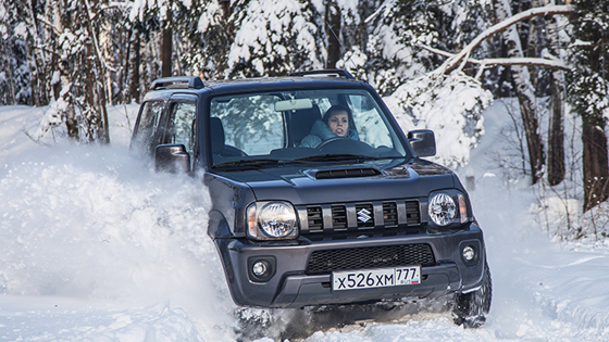 За два десятка лет – а третье поколение «Джимни» появилось в 1998-м – маленький «Сузуки» изменился совсем не много. Пару-тройку раз – последний рестайлинг состоялся в 2012 году – машине слегка подретушировали внешность. Но именно что слегка – при создании Jimny дизайнеры «Сузуки» не гнались за модой, очевидно поэтому малыш и сегодня вовсе не выглядит устаревшим. Перемены внутри куда более заметны: симпатичнее стали руль и особенно панель приборов, появилась камера заднего вида с очень, кстати сказать, хорошим обзором. А высоко на центральной консоли вместо простенького приемника располагается большой дисплей мультимедийки. «Ура! «Джимни» наконец-то обзавелся полноценной системой на ОС Андроид», – подумала я, увидев на экране зеленого робота. Но, откровенно говоря, новинка слегка разочаровала. Экран маркий, телефон как-то криво подцепляется по блютузу, а сенсорной кнопкой, отвечающей за звук, пользоваться неудобно. И сколько я ни старалась, заставить работать одновременно навигатор и радио так и не смогла. В остальном в салоне ничего нового. Те же удобные передние кресла с ручной даже при наличии кожаной «мебели» регулировкой – только продольной и по углу наклона спинки – и рассчитанные на не слишком крупного водителя. Тесный для больших пассажиров задний ряд. Вчетвером в «Джимни» можно путешествовать только на небольшие расстояния – маленький «сузучок» идеален для двоих, третий очень скоро может почувствовать себя здесь лишним. Правда, у меня довольно скоро появилось ощущение, будто после последнего рестайлинга интерьер стал просторнее и воздушнее. Может, оттого, что эргономика продумана идеально: в салоне масса всевозможных ниш, карманов, боксов и отсеков. Порой даже диву даешься – как в такой маленький с виду автомобильчик можно уместить горы вещей и даже сноуборд с лыжами. Впрочем, все это присказка. В случае с Jimny сказка начинается только тогда, когда вы съезжаете с асфальта. И уж я дорвалась! Пробравшись на укромную лесную дорожку, я вволю погоняла мой «Сузуки» по снежной целине и по склонам давно заброшенного карьера. Этот малыш рождает у своего водителя редкое ощущение почти полной вседозволенности на бездорожье. Ведь даже если вы сдуру сунетесь в такое место, куда соваться не стоило даже на танке, откопать «Джимни» из-под снега или вытащить его из сугроба гораздо легче, чем любой другой вседорожник. Ведь весит-то он тонну с маленьким хвостиком. Вообще машина эта во всех смыслах уникальна. Бытует мнение, мол, раз автомобиль маленький, значит, он женский. И за рулем «Джимни» часто можно увидеть девушек. Однако, несмотря на свою компактность, даже, можно сказать, миниатюрность, Suzuki Jimny очень серьезный вседорожник – машина с настоящим мужским характером. Прочная выносливая рама, которая крепится к кузову при помощи демпферов, позволяющих гасить микровибрации и удары, зависимая подвеска спереди и сзади, понижающая передача, жестко подключаемый передний мост, короткая база, высокий клиренс и короткие свесы делают его почти вездеходом. Сравниться с ним на бездорожье могут разве что уходящий «Гелендеваген», ушедший «Дефендер» да «Джип Рэнглер». Но сколько стоят все эти машины, помните? А новый Jimny станет вашим всего за 1,2 млн рублей. Так что конкурентами «Сузуки» скорее можно считать ВАЗ 2121 «Нива» и УАЗ. Компактные размеры п