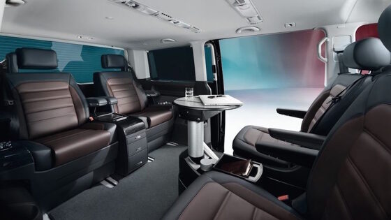 Седан представительского класса с комфортом доставит в офис, из офиса — на переговоры. Но сколько бы полезных функций ни добавляли в такое авто инженеры, оно всегда остается лишь средством передвижения. Volkswagen же предлагает успешным бизнесменам не терять времени даром и использовать дорогу для пользы дела, пересев на Multivan Business. Минивэн получил серьезный апгрейд, и теперь его внешний вид не уступает богатому функционалу. Снаружи — хромированные детали, светодиодные фары и затемненные стекла, а внутри — панели из натурального шпона, кожаный салон, бар-холодильник, складной столик, выдвижные ящики и крючки для плечиков. Салон Multivan Business с двумя рядами сидений рассчитан на четырех пассажиров. Конфигурация кресел позволяет сидеть им, как по ходу движения, так и лицом к лицу. Главные кресла оснащены электрической регулировкой и функцией подогрева. Наладить рабочий процесс в пути помогут Wi-Fi роутер и канал громкой телефонной связи. В водительской зоне — также кресла с электрорегулировкой и система трехсезонного климат-контроля. Инфомедиа-система Discovery Media поддерживает голосовое управление, а в салоне установлено 11 динамиков Dynaudio. За безопасность в Multivan Business отвечают датчик усталости водителя, ассистент экстренного торможения, функция автоматического включения и выключения дальнего света, ассистенты парковки и перестроения, датчик давления в шинах и другие электронные ассистенты.