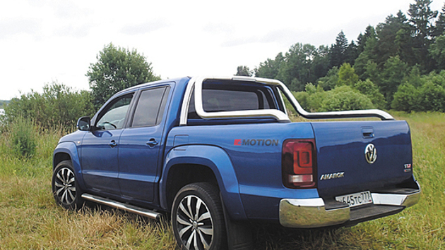 Большинство из нас настолько зависит от материальных ценностей, что определенные предметы обихода не просто влияют на наше сознание, но и меняют мироощущение. Пусть ненадолго, но с последствиями. Вот, например, молоденькому застенчивому автостуденту — хрупкой, мнительной и ранимой натуре с массой комплексов — достаточно тридцати минут «освоения целины» за рулем Volkswagen Amarok, чтобы открыть в себе новые качества. Летит такой осмелевший юноша с ветерком по русскому полюшку и не замечает, как его потряхивает на ямах, кочках и ухабах. Ведь он уже не в машине едет, а несется в седле на удалом коне, и в руках у него не штурвал, а настоящие вожжи. И как будто скачет студент верхом по широкому раздолью так же, как его далекие предки, и чувствует, как сливается с родной стихией. Для молодых неокрепших душ просто так подобный опыт не проходит, а дарят его такие машины, как Volkswagen Amarok. Главное, вывезти лошадку на простор — в привычную среду обитания, подальше от каменных вавилонов. К сожалению, в России отношение к пикапам двоякое — с одной стороны, «рабочая лошадка», а с другой — если не роскошь, то удовольствие не из дешевых. Для среднего сельского жителя подобная романтика уж точно не по зубам. Тем более, если речь идет о немецком пикапе, который благодаря богатству комплектаций и самой высокой грузоподъемности несколько дистанцируется от своих «одноклассников». После ухода с российского рынка Ford Ranger, этот показатель VW Amarok в 1248 кг остается непревзойденным среди присутствующих у нас пикапов. Напомним, что автомобиль удостоился первого рестайлинга пару лет назад, хотя выпускается аж с 2009 года. После обновления Amarok стал выглядеть более презентабельно, но нет сомнений, что этот «танк» грязи совсем не боится. Вопросов к внешности брутального «немца», как правило, не возникает, и отчасти ее уже можно считать эталонной для пикапа. Места в салоне «Амарока» предостаточно, чтобы почувствовать себя кайзером, несмотря на то, что это, по сути, суровый утилитарный автомобиль. Показательная эргономика, свойственная для моделей немецкого концерна, достойно оформлена в современном минималистическом стиле с традиционными элементами фамильного консерватизма. Но в силу особенностей кузова задним пассажирам придется смириться с короткой подушкой дивана, вертикальной спинкой и ограниченным пространством в области коленей. Да и втроем здесь не особо усядешься, если седоки уж совсем не субтильной комплекции. Пожалуй, это основной недостаток Amarok — он не слишком гостеприимен к задним пассажирам. Зато размеры грузового отсека заслуживают особого внимания: полная ширина составляет нешуточные 1620 мм, длина — 1555 мм, глубина — 508 мм (при откинутом заднем борте длина кузова увеличивается до 2100 мм). Таким образом, вместительность «Амарока» получается больше, чем у конкурентов, присутствующих на нашем рынке. Кроме того, при клиренсе 192 мм погрузочная высота грузового отсека составляет 780 мм. Таким образом, что касается утилитарности «немца», то, учитывая еще и самую большую грузоподъемность, у него в этом смысле самые выгодные позиции среди аналогов. 180-сильного дизельного битурбированного мотора хватает за глаза, чтобы не потеряться в каменных джунглях. Но, как уже было сказано, особую романтику «Амарок» дарит на раздолье среднерусской возвышенности, где он уверенно,