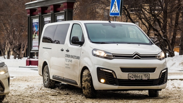 Минивэн Citroen SpaceTourer является аналогом соплатформенного Peugeot Traveller, который мы тестировали ранее. Тот автомобиль был в богатой комплектации, а наш сегодняшний участник представлен в базовой версии «всего» за 2 249 900 рублей. Посмотрим, как ездит Citroen, какой комфорт предоставляет и кому вообще может понадобиться такое авто. Подробности в тест-драйве редактора НГС.АВТО Дмитрия Косенко. Ездить на Citroen SpaceTourer (предоставлен официальным дилером «Луна Авто») по тесному Новосибирску поначалу может показаться трудным, особенно парковаться. Длина ведь почти 5 метров. Зато отличный обзор и высокая посадка, видишь транспортный поток далеко перед собой. «Ситроеновский» сплющенный нос и большие фары делают автомобиль похожим на упитанного головастика. Белый цвет, черные окна и различимые границы дверей подчеркивают длину минивэна. А сзади SpaceTourer — типичный грузовой квадратный «брусок». Лишь бы был повместимее. Передняя панель высокая, пухлая. Пластик жесткий повсюду, впрочем, выглядит он прилично. Кожаный руль с черными блоками кнопок. Освежает его только логотип Citroen и одна вставка под металл. Сиденья тканевые, в меру приятные и плотные. Посадка проблем не доставляет, с боковой поддержкой тоже всё неплохо. Как все-таки удобен подлокотник, прикрученный к спинке сиденья. Был бы он еще чуть подлиннее. Мультимедийная система, если можно так её назвать, представлена маленьким монохромным экранчиком и набором черных кнопок. Можно послушать радио, подключить телефон, покопаться в немногочисленных настройках. Звук, кстати, неплох. Стильные многоугольные шкалы приборной панели. Но та же проблема, что и у Peugeot, — разноразмерные цифры на спидометре. Мечтаете о Range Rover? У «Ситроена» есть кое-что от него — шайба селектора АКП. Вполне стильная и удобная. Сзади 2 ряда кресел и 6 мест. Подлокотников здесь уже нет, но можно регулировать наклон спинки. В целом просторно. Сдвижные двери без электропривода. Всё ручками, ручками. Нет электропривода и у багажной двери, а она ведь тяжелая. Раскладываем оба ряда сидений и получаем 3968 литров объема. Настоящий грузовик. 150-сильного дизеля хватает для уверенного разгона, ускорений, перестроений. Жужжит и вибрирует он, конечно, сильно, а что поделать — дизель. Автомат хорош своими быстрыми переключениями, отсутствием толчков, правильным выбором пониженной или повышенной передачи. Шумоизоляция — она как бы есть, но звуковой фон — на грани некомфотных ощущений. Большие кузов и днище собирают на себя все возможные шумы. Жидкий руль и размазанный «ноль» приводят к тому, что на шоссе автомобиль плохо чувствуешь, а иногда и подруливаешь. Перестраиваться приходится «на ощупь». Слабое реактивное действие — баранку надо самому раскручивать назад после поворота. Неровности SpaceTourer проходит комфортно, практически проплывает. Но острые ямы все равно отзываются ударами. На удивление, у такой габаритной и высокой машины вполне спокойные крены. Базовые 2 249 900 рублей за минивэн с автоматом могут легко превратиться в 2,5 миллиона рублей — если добавить кожаный салон, навигацию, ксенон, литье, удержание в полосе, активный круиз и ещё кое-что по мелочи.