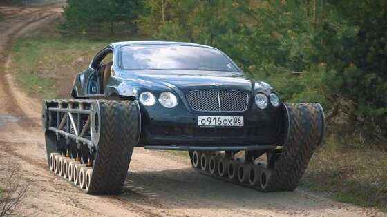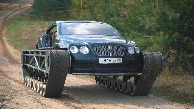 Необычную идею – переделать подержанный Bentley Continental в танк реализовала группа российских умельцев под руководством видеоблогера Константина Заруцкого, после чего выложила результаты своего труда на YouTube-канал «AcademeG». Новое транспортное средство получило название «Ультратанк». Его создатели разработали нестандартную раму и заднюю ось, приводящую в движение гусеницы. Сердцем автомобиля стал битурбированный двигатель V-8 с гидротрансформатором. Авторам проекта было важно увидеть, как поведет себя их детище в движении, в частности при поворотах. При первой попытке гусеница слетела. После внесения некоторых изменений неисправность удалось устранить. Поворот осуществляется не как обычно у автомобилей – поворотом рулевого колеса, а за счет торможения одной из гусениц с помощью дифференциала, как у техники на гусеничном ходу. Однако полное представление о том, что из себя представляет «Ультратанк» можно получить только из видеосюжета на YouTube.