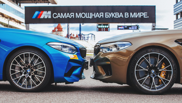 «Понимаете, у нас традиция. Каждый год 31 декабря мы с друзьями ходим в баню». Ну, а у нас в Моторе своя традиция: в мае мы отправляемся на трассу Формулы-1 в Сочи, чтобы промчать по ней на М-моделях BMW. В прошлом году проверку боем проходил «простой» седан M5, а в этот раз для нас с вами приготовили самые быстрые «эмки» в спецверсиях под названием Competition. Причем среди них была и двухдверка M2 Competition, уже успевшая стать культовой среди фанатов. Что еще за Competition? Все началось шесть лет назад, когда отделение BMW M впервые представило опцию под названием Competition Package для моделей M5 серии F10 и M6 серии F12/13. В переводе с английского «Competition» означает «состязание», что намекает на еще более серьезную подготовку таких «эмок» для трека. В 2013-м пакет Competition поднимал мощность битурбо-V8 4.4 на М5/М6 c 560 до 575 сил, а также включал в себя перенастроенную подвеску с иными углами установки колес, доработанной эластокинематикой, уменьшенным на 10 мм клиренсом и более жесткими пружинами, амортизаторами и стабилизаторами. Плюс «эмки» получали перекалиброванную систему стабилизации, злую выпускную систему, оригинальные 20-дюймовые колеса и немного особенного внешнего декора. В 2014-м немцы представили 600-сильный M5 в юбилейной версии, посвященной тридцатилетию модели, а спустя два года на его основе было сделано двести богато оснащенных седанов M5 с приставкой Competition Edition в особом черном и белом цвете, которые поставили красивую точку в истории «эмки» серии F10. С 2016 года Competition Package стал доступен и для M3/M4, а с появлением M5 нового поколения с индексом F90 в отделении M решили превратить эту опцию в отдельное Competition-семейство. Ведь чем круче статус дорогой спецверсии, тем выше на нее спрос, и тем больше сможет заработать производитель. Для справки: из всех проданных M5 серии F10 (это почти 20 тысяч машин) целых 40% приходится на седаны с пакетом Competition, и теперь эта доля будет только расти. Главными Competition-рынками станут США, Великобритания, Германия, Япония и Канада. Кстати, в России с недавних пор продается только M5 Competition по цене от 7,91 млн рублей. Для сравнения, Mercedes-AMG E 63 S (612 сил) стоит минимум 8,21 млн. Статус новый, суть — та же Легкий заводской чип-тюнинг увеличил мощность M5 Competition с 600 до 625 сил, крутящий момент битурбо-восьмерки 4.4 в 750 Нм остался без изменений, но теперь полка максимальной тяги стала на 200 об/мин шире и длится с 1800 до 5800 об/мин. Разгон до сотни — 3,3 с (на 0,1 быстрее обычной M5), до 200 км/ч — 10,8 (минус 0,3). Неплохо для большого бизнес-седана, но на самом деле все это — детский лепет на фоне тюнинга, который предпочитают многие владельцы М5 F90. Доработки уровня Stage 2, которые включают в себя чип, изменение впуска и выпуска с удалением катализаторов, легко доводят отдачу двигателя S63 до сумасшедших 800 сил и 1100 Нм. Хорошо настроенные «эмки» с такой мощностью на спортивном топливе и цепких шинах выстреливают до сотни за 2,6-2,7 с, а упражнение 100-200 км/ч выполняют примерно за 5 с. И уж если выбирать «эмку» для подобного проекта, то лучше взять именно Competition. Ведь опоры силового агрегата у нее почти в два раза жестче, и, по традиции, доработано шасси. Пружины на 10% жестче, клиренс — на 7 мм ниже, у адаптивных амортизаторов новый софт, спереди изменены стойки стабилизатора и сделан более агрессивный отрицательный развал, а сзади сам стабилизатор стал толще, плюс в тягах, ответственных за схождение, классиче