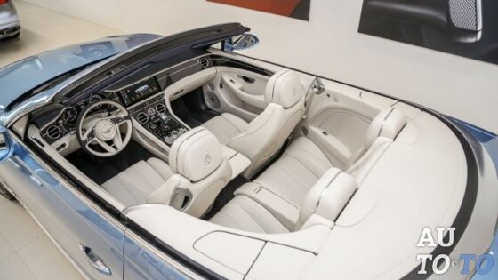 Роскошный Bentley Continental GT Convertible, изображенный на прикрепленных снимках, представляет собой прототип с левосторонним управлением, выполненный в ошеломляющем светло-металлическом синем цвете под названием Silverlake. Автомобиль также показывает 21-дюймовые диски, специальные логотипы, напоминающие о столетии компании, шильдики на крыльях, а также декоративные элементы дизайна, выполненные из 18-каратного золота. Внутри выставочный Bentley демонстрирует кожаную обивку, фирменный значок на рычаге переключения передач и рулевом колесе, гласящий о юбилее, специальную гравировку, 12,3-дюймовый сенсорный дисплей, три аналоговых циферблата, сиденья повышенного комфорта с регулировкой в 20 направлениях, контрастной строчкой и вышитыми эмблемами Bentley на подголовниках, а также аудиосистему Naim с 22 динамиками и мощностью 2200 Вт. Continental GT Convertible оснащается тем же 6,0-литровым двигателем W12, рассчитанными на 626 л.с. и 900 Нм. Этого достаточно для ускорения 0-100 км/ч за 3,8 секунды (на одну десятую секунды медленнее, чем купе) и преодоления отметки в 333 километра в час. Рекомендуем для прочтения: Bentley представляет новые версии Continental GT и GT Convertible Bentley электрифицирует линейку и запустит первый электромобиль в 2025 году Эксклюзивный Bentley от компании Mulliner оценен в 1,3 миллиона долларов Роскошный пикап Bentley S1 уйдет с молотка Крыша, которая, по словам компании, была усовершенствована, обеспечивает лучшую звукоизоляцию и развертывается/убирается за 19 секунд на скорости до 50 км/ч. Предлагается семь цветов реализации.