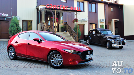 Класс хэтчбеков С-класса переживает кризис. Часть еще недавно популярных моделей стали уже историей, часть взяли паузу, чтобы возродиться в роли «электричек». Mazda же со своей новинкой просто воодушевила нас: есть еще бренды, которые верят в некроссоверные автомобили. Какой же получилась четвертая «тройка»? Споры о том, что, в сравнении с предшественником, новая Mazda 3 стала скромнее по всем параметрам, за неделю теста я вел не единожды. Приходилось убеждать, доказывать. Мол, не едет, не бежит как хотелось бы. 1600 км в самых разных режимах показали, что более сбалансированный автомобиль еще поискать. Вау-эффект «Кто тебе больше нравится – седан, или хэтчбек?», - устраивает блиц-опрос маркетинг-отдел японского производителя в рамках украинской презентации. Без крохи лжи я проголосовал за хэтчбек. Оказалось, что молодежная аудитория голосует больше за «пятидверку», а старшее поколение – за седан. Приятно себя еще чувствовать молодым. Вообще, внешне герой нашего теста мне напомнил переднюю часть винтового самолета: длинный, хорошо обтекаемый нос и кабина пилота с минимальным углом атаки. В огромной решетке радиатора при быстрой езде «зависают» бабочки и жуки. Любители драйва могут потренировать себя в энтомологии. С кормой машины не все так однозначно, как с передком. Некоторые коллеги сильно широкую заднюю стойку называют грузной. Мне же кажется, что задние углы – самые красивые места новинки. Стойка в сочетании с задним фонарем, и уходящая на расширенную колесную арку линия напоминают о «Ле-мановских» прототипах. Головная оптика – диодная во всех версиях. Но бывает вариант поскромнее – просто «ближний/дальний». В нашем случае свет адаптивный, который «вырезает» встречные и попутные транспортные средства. Задние фонари только в «базе» без светодиодов. С клиренсом в 135 мм всегда нужно быть очень аккуратным и помнить о низко сидящей «губе» переднего бампера. Правда, щедрая россыпь датчиков парковочного ассистента помогут уберечь красивую деталь в сохранности. 16-дюймовые колеса обеспечивают неплохой комфорт, при этом не теряются в колесных арках. Но все же если вы за стиль, опционально вам предложат диски на два дюйма больше. Ах, Италия… «Мазда» при оформлении интерьера сделала ставку на лаконичный, и одновременно с этим высокофункциональный и безупречный по качеству салон. Торпедо лишено каких-то ярких точек притяжения, но оно полностью выполнено из мягких добротных материалов (за исключением вставок из алюминия). Дефлекторы обдува замаскированы, выделяются только несколько кнопок и два регулятора, отвечающих за микроклимат. Общая архитектура напоминает обновленную Mazda 6. Рулевое колесо с точно выверенными по дизайну и качеству изготовления клавишами даже захотелось повесить в своей комнате, настолько оно прекрасно. Если абстрагироваться от логотипа на руле, вспоминаются итальянские спортивные родстеры и купе 60-70-х годов прошлого века. Классика вернулась. Щиток приборов о трех циферблатах лишь частично электронный. Только центральное «окно» спидометра имеет сменяемую графику. Правда, ее возможности сильно ограничены. Проекционный дисплей имеет очень широкую площадь отображения, так что независимо от положения кресла и роста водителя, со считыванием информации с «лобового» проблем не будет. Кресло водителя выглядит про
