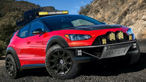 Компания Hyundai привезет на шоу SEMA, которое пройдет с 5 по 8 ноября в Лас-Вегасе, внедорожный концепт Veloster Grappler. Шоу-кар построен на базе асимметричного хэтчбека Veloster, но имеет лучшую геометрическую проходимость и набор аксессуаров для оверлендинга. Внешне от дорожного Veloster концепт Grappler отличает увеличенным дорожным просветом, срезанными бамперами с защитными пластинами, кенгурятником, карбоновым капотом Seibon и дополнительной светотехникой Baja Designs. На крыше шоу-кара установлен багажник Thule, на котором крепится солнечная панель Goal Zero. Завершает облик хэтчбек — уникальная ливрея. В салоне установлен интегрированный каркас безопасности, кресла Recaro. Есть наборы для оказания первой медицинской помощи и ремонта, тент Napier, а также портативная электростанция Goal Zero. О двигателе Grappler ничего не говорится. В США Veloster предлагается с атмосферным мотором 2.0 мощностью 149 сил (179 Нм) или «турбочетверкой» 1.6, выдающей 204 силы (264 Нм). В зависимости от агрегата, хэтчбек комплектуется шестиступенчатой «механикой», автоматом и семиступенчатым «роботом». В прошлом году Hyundai показал на SEMA Veloster N c электронным блоком управления Remus Powerizer, выхлопом с активными заслонками и экспериментальным холодным впуском и интеркулером. Хэтчбек также хэтчбек оборудовали распорками Pierce Motorsports, регулируемыми стабилизаторами поперечной устойчивости и улучшающим отзывчивость педали газа устройством Responder.