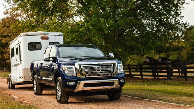 Компания Nissan представила рестайлинговую версию пикапа Titan XD. Грузовичок обзавёлся новым передним бампером, светодиодной оптикой с другим рисунком, массивной хромированной радиаторной решёткой и колёсными дисками изменённого дизайна. Кроме того, Titan XD потерял вариативность в выборе кабины и лишился дизеля Cummins. От «лёгких» грузовичков Titan, которые обновились в прошлом месяце, модификация XD отличается удлинённой на 381 миллиметр рамой и кузовом длиной 1981 миллиметр. Внешне тяжёлый пикап легко узнать по массивным зеркалам, лифтованной подвеске и хромированной маркировке V8 Endurance на передних крыльях. Начиная с 2020 года Titan XD будет доступен в единственной версии с двойной кабиной Crew Cab, 1981-миллиметровым кузовом, девятиступенчатым «автоматом» и полным приводом. Однорядной модификации и полуторной кабины у тяжёлого «Титана» не будет. Пять уровней отделки салона сохранились: базовая, как и прежде, называется S, а топовое оснащение именуется Platinum Reserve. Системы сцепки типа Gooseneck с опорой на кузов входит в базовую комплектацию Titan XD. Предельные характеристики буксируемых прицепов Nissan пока не сообщает, ограничившись оценкой «достаточная буксирная мощность». Производитель подчеркнул, что у XD более высокая грузоподъёмность и тяговые возможности, нежели у обычного «Титана». Вероятно, нежелание обнародовать данные по буксировке обусловлено исключением тяговитого дизеля — на фоне «гонки вооружений» Ford и Chevrolet, безальтернативный 5,6-литровый бензиновый V8 Nissan, форсированный до 406 лошадиных сил и 559 Нм крутящего момента выглядит скромно. По аналогии с обычным «Титаном» у XD появилась новая мультимедиасистема с восьмидюймовым экраном и W-Fi-модулем, количество подушек безопасности увеличилось с шести до восьми, а список водительских ассистентов расширился за счёт системы помощи при трогании в гору, электронного управления задним дифференциалом и функции контроля спуска с горы. Кроме того, все «Титаны» оснащаются комплексом Nissan Safety Shield 360, включающим в себя ассистент контроля полосы, адаптивный ближний свет, систему контроля слепых зон и других меры активной безопасности. Обновлённый Nissan Titan XD поступит продажу в США в начале 2020 года. Цены будут объявлены позже. Прайс-лист на обычный «лёгкий» пикап Titan после рестайлинга начинается с 30 690 долларов (около 1 миллиона 957 тысяч рублей по текущему курсу).