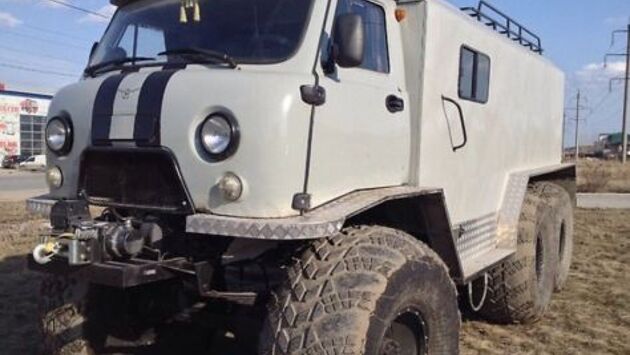«Буханка» получила высокую проходимость. Как известно, УАЗ-452 выпускается с 1965 года. Поскольку производитель не особо беспокоился по поводу безнадежно устаревшего экстерьера внедорожника, народные умельцы то и дело дорабатывают внешний вид «Буханки» сами. И в зависимости от поставленной задачи, УАЗ-452 может выглядеть как микроавтобус для дальних путешествий, или как броневик, а то даже примеряет на себя функции болотохода, как в данном тюнинг-проекте. Фотографии внедорожника появились в одной из тематических групп, посвященных автотюнингу. На снимках видно, что над «Буханкой» гаражные мастера поработали основательно. Прежде всего кузов автомобиля установили на грузовую платформу от «Шишиги», от чего пришлось удлинять кузов внедорожника. Мосты и раздаточную коробку также взяли у «Шишиги» По итогу, добавилась еще одна пара колес и теперь их стало шесть. Фактически, от «Буханки» осталась только кабина. Кузов сварили сами. Добавили лебедку к бамперу, на крыше кабины появились дополнительные огни, сверху кузова установили экспедиционный багажник, к которому можно добраться с помощью лестницы на задней двери. Расширили колесные арки и пороги. Значительно увеличили дорожный просвет за счет огромных колес и подвески. По итогу, из «Буханки» получился сверхпроходимый вездеход, который пользователи сети назвали «болотоходом» и посетовали, что таких «дорожных монстров» не выпускает УАЗ.