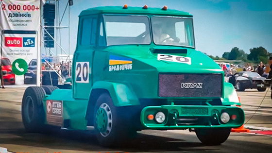 Обозначение 2JZ-GTE известно едва ли не каждому, кто интересуется автоспортом и тюнингом. А как насчет маркировки 5ТДФ?За ней скрывается танковый двигатель, который стоит на зеленом чудище КрАЗ-5450. Двигатель оппозитный, с пятью цилиндрами, десятью поршнями, двумя коленвалами и 1100 л.с. Автомобиль был построен в начале девяностых годов для Нюрбургринга, а спустя долгие годы простоя вернулся и участвует в дрэг-рейсинге. Трак развивает сотню примерно за 12 секунд и максимальные 180 км/ч. Кто-то скажет, что это не слишком быстро. Но не стоит забывать, что речь идет о шеститонном гиганте, показывающем крутые визуальные и звуковые спецэффекты.