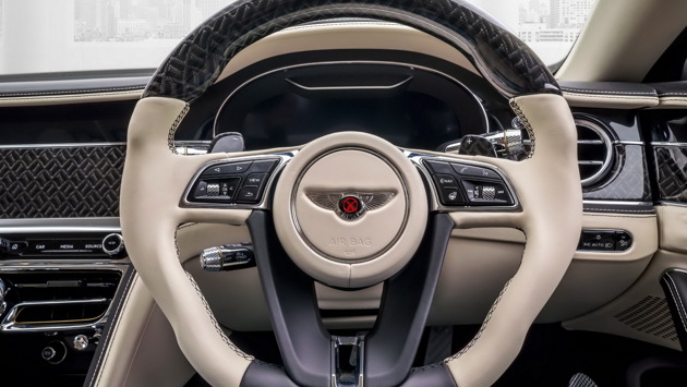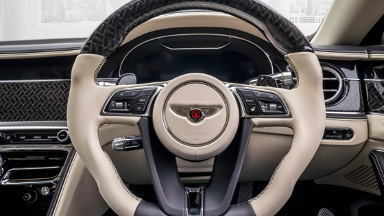 Тюнинг-мастерская Mansory показала эпатажный тюнинг-проект нового седана Bentley Flying Spur. Дизайнеры отказались от классического круглого руля Bentley в пользу бесформенного кастомного изделия с карбоновой вставкой, добавили углепластиковых деталей на передней панели и заменили строгие детали кузова на спортивный обвес. Bentley Flying Spur Вместо традиционного руля Bentley, на обшивку которого на новом Flying Spur уходит около трёх с половиной часов, стилисты Mansory установили штурвал непонятной формы, словно перекачанный стероидами. Сердцевина, архитетура спиц и кнопки мультируля остались нетронутыми, но логотип Bentley уступил место лейблу Mansory. Снаружи Bentley Flying Spur Mansory узнаётся по капоту с прорезями, аэродинамичным боковым юбкам, выступающей «губе» переднего сплиттера, диффузору, спойлеру на крышке багажника, а также видоизменённому выхлопу с парой сдвоенных патрубков. Кроме того, демонстрационный экземпляр выделяется красными вставками на боковых изгибах кузова, ребре капота и других элементах тюнинг-обвеса. Седан Bentley можно украсить 22-дюймовыми дисками с эксклюзивным рисунком: на выбор доступны многоспицевые колёса в ретростиле или спортивные диски с узором в виде пятилистного клевера. Агрессивный облик нового Flying Spur Mansory подкреплён форсировкой двигателя. Доработка программного обеспечения позволяет нарастить отдачу 6,0-литрового W12 с 635 лошадиных сил и 900 Нм крутящего момента до 720 сил и 1000 Нм. «Заряженный» седан отыгрывает 0,2 секунды в разгоне с места до 100 километров в час — стартовый рывок занимает всего 3,6 секунды. В Mansory научили самый роскошный Bentley набирать «сотню» за пять секунд Прайс-лист на тюнинг-кит Mansory пока не опубликован. Седаны Flying Spur третьего поколения появились в дилерских центрах Bentley месяц назад, так что баварской мастерской удалось выпустить одну из первых программ доработки новинки. Короли эпатажа