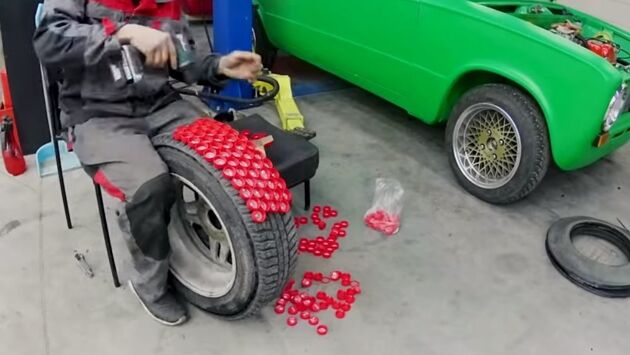 Блогеры сделали шипованные шины из крышек от пластиковых бутылок