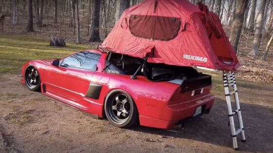 Чтобы не тратиться на кемпер, американец сделал из своего спорткара Acura NSX кемпер для путешествий или дальних поездок. Чтобы превратить среднемоторный спорткар в некое подобие кемпера, Крис заказал специальные крепления на заднюю часть кузова. К ним и крепится специальный багажник с раскладной палаткой, в которой путешественник собирается ночевать на природе. Как признался американец, пока что сам он не тестировал самодельный кемпер, опасаясь повредить кузовные панели. Однако его овчарка уже опробовала импровизированное жилище. Теперь Крис собирается приобрести еще один «убитый» спорткар Acura NSX, чтобы его распилить и сделать из него автоприцеп. На автомобиле он планирует оставить багажник, а на прицеп перенести палатку. Видимо, парень не особо доверяет выстроенной конструкции и тому, сможет ли она его выдержать. Что касаемо спорткара, на данный момент купе оснастили заниженной подвеской, массивными разноширокими колесами и аэродинамическими обвесами.