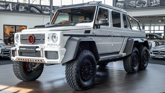В 2013 году Mercedes-Benz представил монструозный G 63 AMG 6x6, который через несколько месяцев стал основой для ещё более экстремальной модификации G 63 AMG 6x6 Brabus 700. Немецкий тюнер построил всего 15 трёхосных внедорожников с длинным названием Limited Edition G 63 6x6 Brabus B63S-700, и один из них сейчас продает компания ROSIER Classic Sterne из Ольденбурга. Цена без учета налогов — 840 000 евро или 67,4 миллиона рублей. За эту сумму можно купить два Rolls-Royce Cullinan. Владельца шестиколесного «Гелика» вынудили покинуть Монако Заводской вариант Mercedes-Benz G 63 AMG 6×6 предлагал покупателям 544-сильный битурбомотор V8 5.5, совмещенный с семиступенчатым автоматом, дорожный просвет 460 миллиметров и колоссальные углы въезда и съезда: 52 и 54 градуса соответственно. Однако даже это не спасало внедорожник от застревания в грязи или снегу. «Брабус» пошел ещё дальше и повысил мощность двигателя до 700 сил и 960 Нм момента. После доработок шестиколесный G 63 AMG 6x6 разгонялся до первой сотни за 4,4 секунды, в то время как обычной машине на это требовалось около шести. Мерседес охраны президента Помимо модуля увеличения мощности PowerXtra CGI и новых турбокомпрессоров, у G 63 AMG 6×6 в исполнении Brabus появились окрас кузова Mystic White Bright, выхлопная система с активными заслонками, новые детали обвеса и элементы салона, дополнительные секции светодиодных ходовых огней, подножки с электроприводом и защитные пластины под днищем. Под капотом разместилась модернизированная система впуска с традиционными для «Брабуса» позолоченными воздуховодами. Видео: Гелик за 84 млн В 2018 Brabus представил очередной проект на базе Mercedes-AMG G 63 прошлого поколения. Новинка получила название Brabus 700 4x4² Final Edition, портальные мосты от монструозного G 500 4x4², 600-миллиметровый дорожный просвет и 700-сильный двигатель. Тираж «финальной» партии внедорожников составит 10 экземпляров. С Большой Би