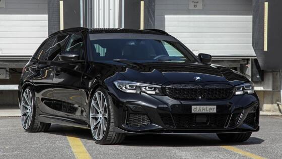 Если вы хоть время от времени нас читаете, то знаете, как сильно мы любим почти все, что создает Alpina. Вы также должны знать, что новый B3 Touring мощностью 460 л.с. занимает особое место в наших сердцах, потому что упрямцы в BMW отказываются сделать что-то подобное с шильдиком M. Но подождите - теперь есть еще вариант для тех, кто хочет невероятный баварский универсал. Это работа тюнинг-ателье из Швейцарии под названием Dahler. То, что вы видите на этих фотографиях, зародилось как 375-сильная полноприводная BMW M340i xDrive Touring - или, другими словами, топовая 3 серия, пока мы ждем новый седан M3. Но в Dahler решили, что это все не то, и теперь предлагает два варианта увеличения мощности. Сначала Level 1, который увеличивает мощность до 435 л.с. и крутящий момент до 630 Нм. Хотя это для слабаков - естественно, вам потребуется наибольшая доступная мощность, поэтому Level 2 дает отличный результат в виде 475 л.с. и 680 Нм от 3,0-литровой рядной "шестерки". И это еще не все. Есть таке фантастический выхлоп с парными насадками из нержавеющей стали и регулируемые вручную спортивные койловеры или короткие пружины. Плюс на "плавнике" есть небольшой швейцарский флаг. Мило. Тем не менее, в остальном мы не сильно впечатлились. Внешностью, например. Черная решетка довольно обычно выглядит, хотя передний сплиттер весьма в тему. А 20-дюймовые кованные диски не имеют ничего общего с легендарными дисками Alpina. Да, мы во власти стереотипов. Но допускаем, что это вполне достойный вариант.
